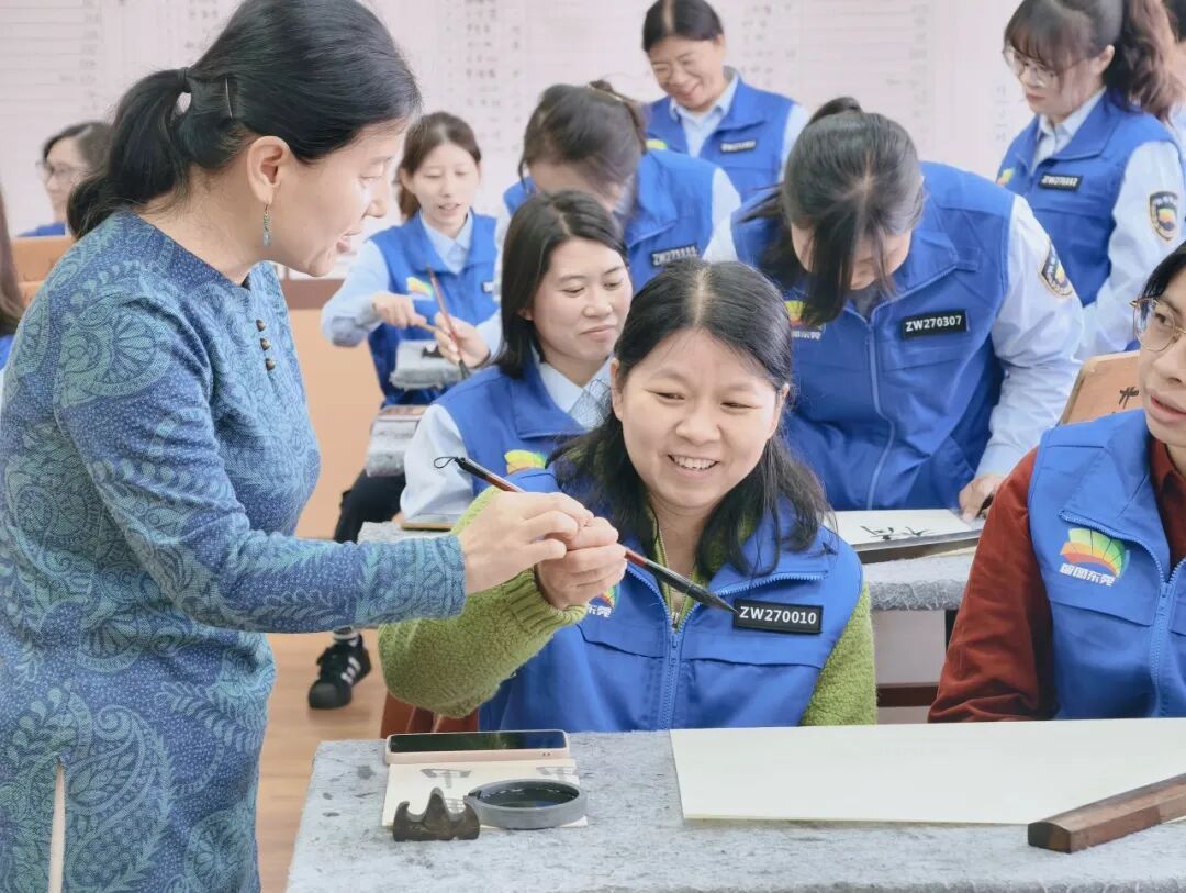 随后,全体人员前往南府书院。专业书法老师现场讲授握笔、运笔等基础知识,并耐心指导大家书写福牌挂件。