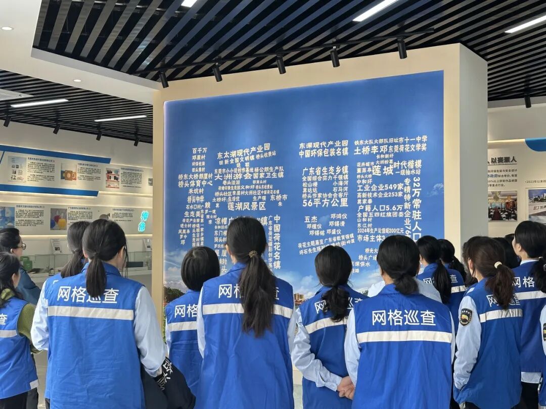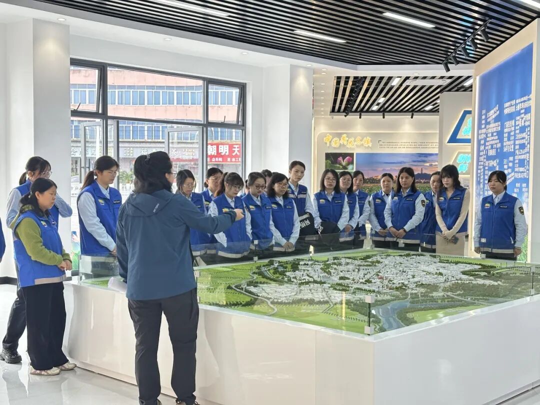 活动首站,女网格员们走进由旧车站活化改造而成的“美丽圩镇客厅”。作为我镇城市形象展示窗口,展厅围绕历史沿革、规划建设、经济产业、文旅发展、“百千万工程”成效、党建引领六大板块,综合运用电子屏、图文展板、沉浸式投影及本土实物、非遗展品等形式,生动呈现我镇发展变迁与城乡建设成果。通过参观,大家进一步了解镇情镇貌,增强归属感与认同感。